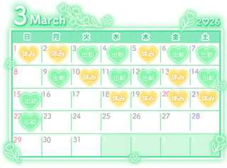 9、12日は10:00~の出勤です。